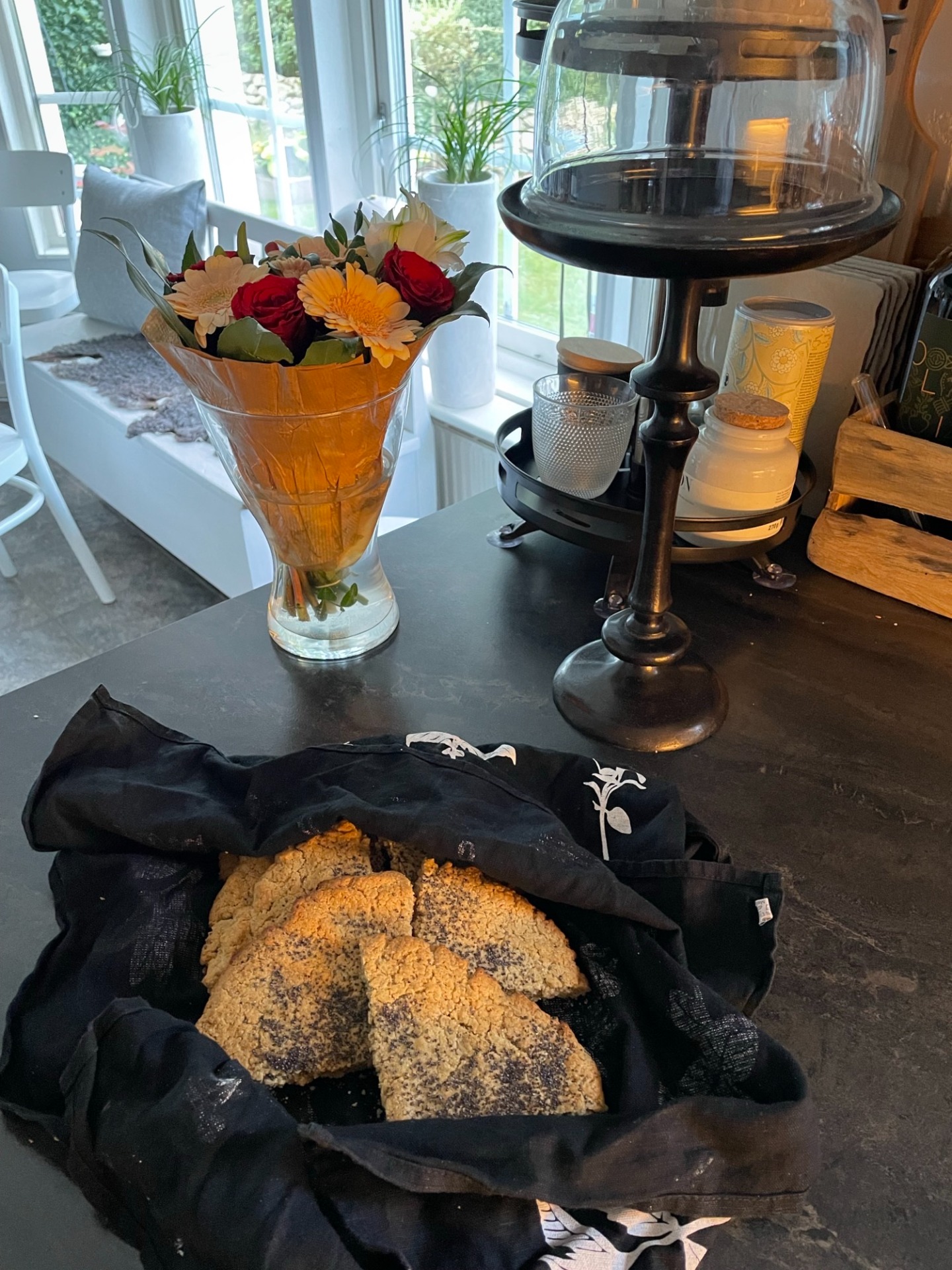 Sätt ugnen på 200 °.Blanda snabbt ihop alla ingredienser till en deg. Ta upp degen och platta ut till en rund kaka, 2–3 cm tjock.Lägg ut på en plåt med bakplåtspapper och skär ett kors över kakan, nagga sedan med en gaffel.Grädda i mitten av ugnen ca 10 minuter. Ta ut och låt svalna något.