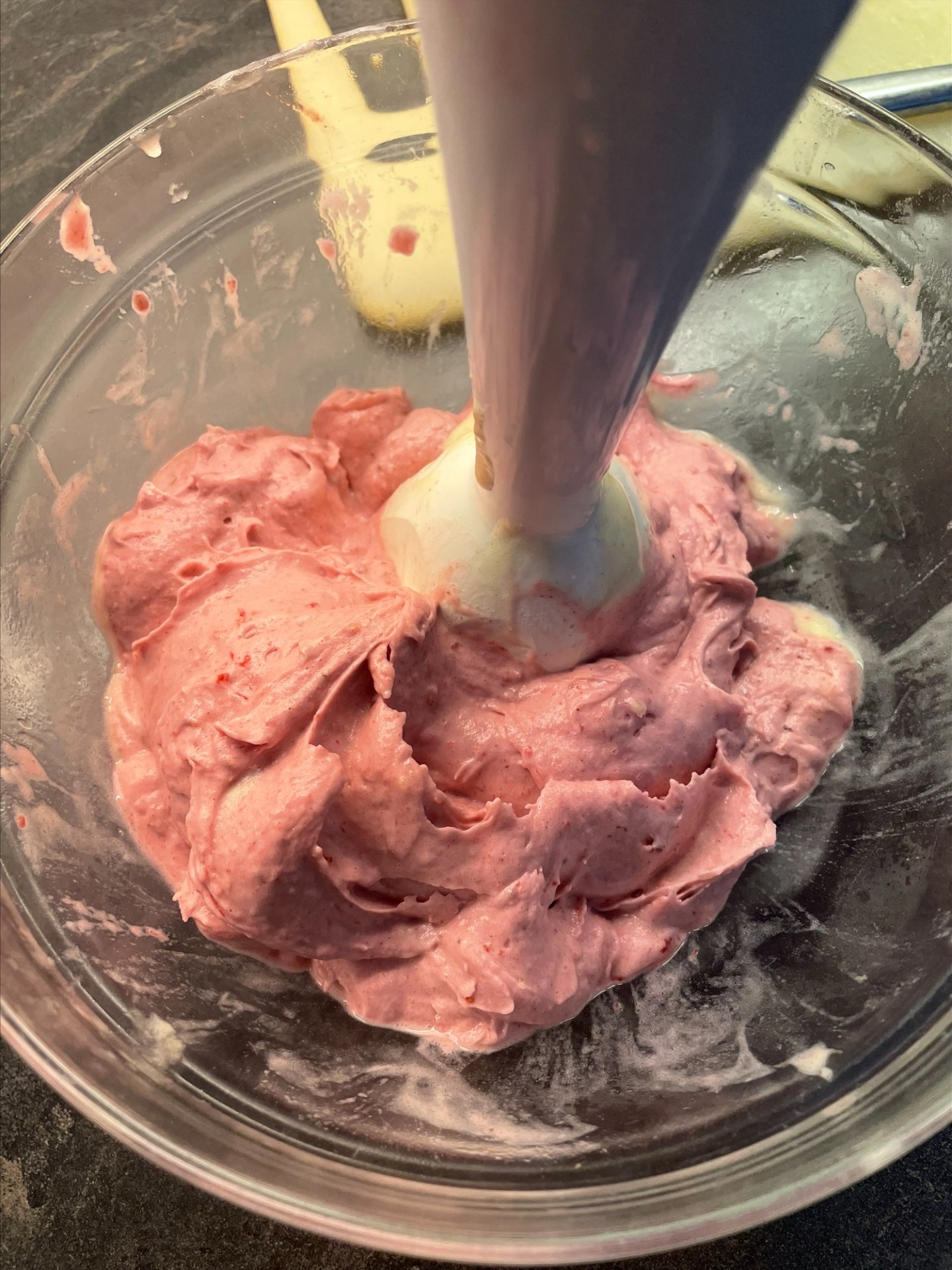 Ta ut och kör dom direkt med stavmixer tills det blir en gräddig god glass.